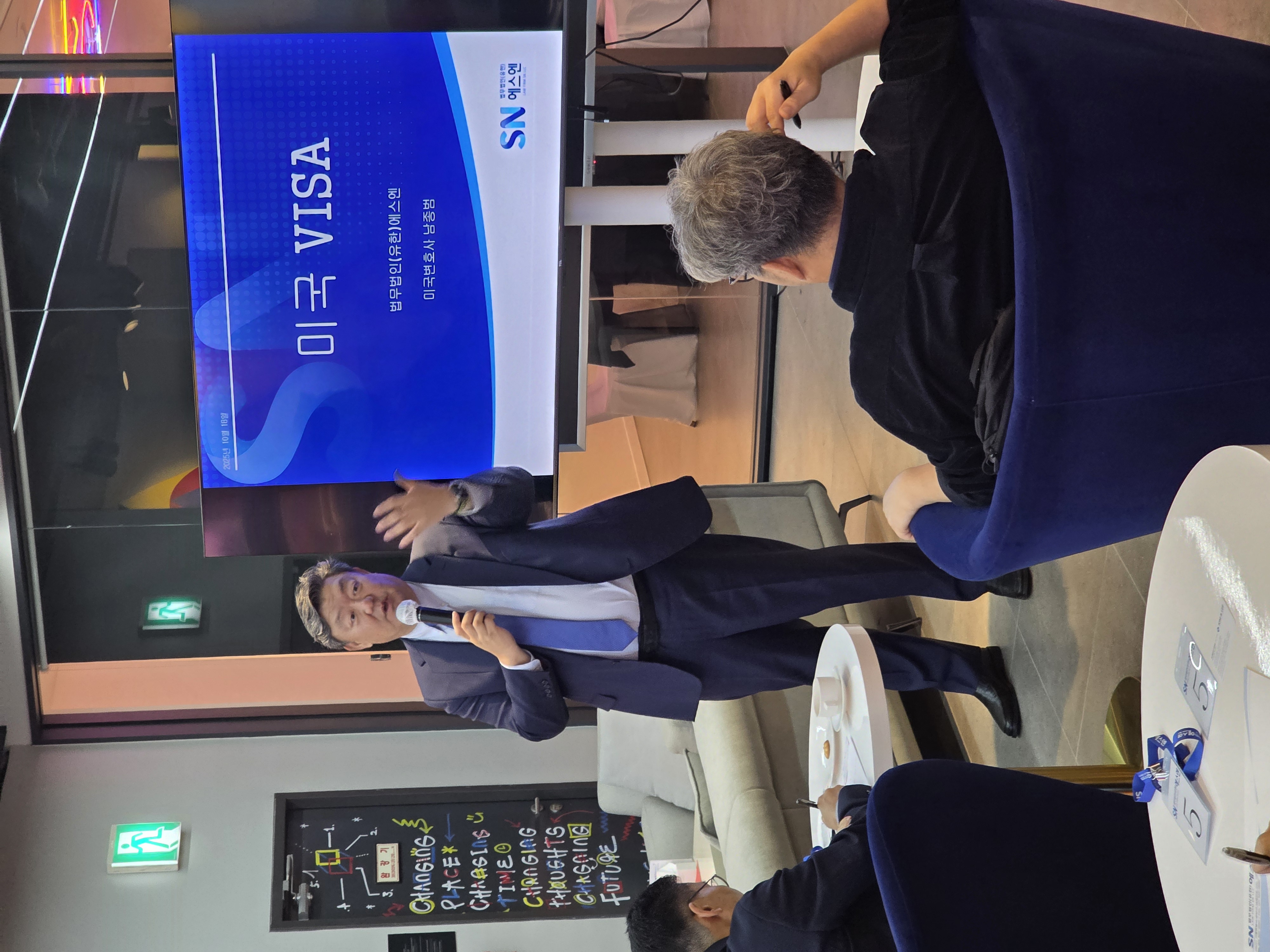법무법인(유한) 에스엔 송영욱 대표변호사는 2025년 10월 18일(토), 서울 강남구 도산대로 에이든호텔 3층 A LOUNGE에서 ‘최신 미국VISA, 회계, 상속, 증여 세미나’를 성황리에 개최하였습니다.